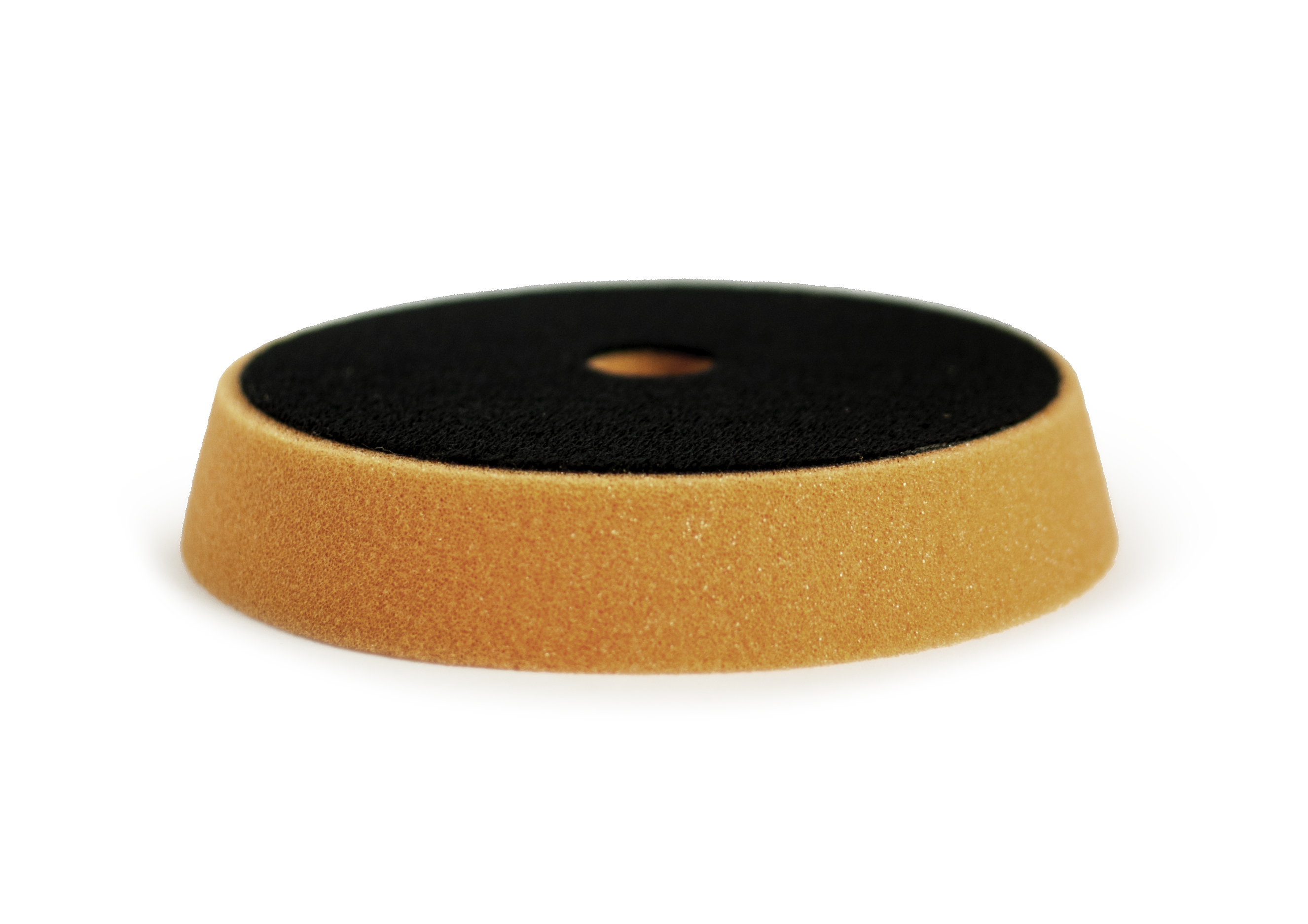 Medium zachte poetspad (of polijstpad) 180x25mm oranje. Uitermate geschikt om geoxideerd lakwerk weer op kleur te krijgen. Tevens geschikt voor krasverwijdering. Door zijn vorm met een gat in het midden en schuine zijkant is deze pad zeer geschikt voor het gebruik met een excentrische roterende poetsmachine met een 150mm steunplaat
