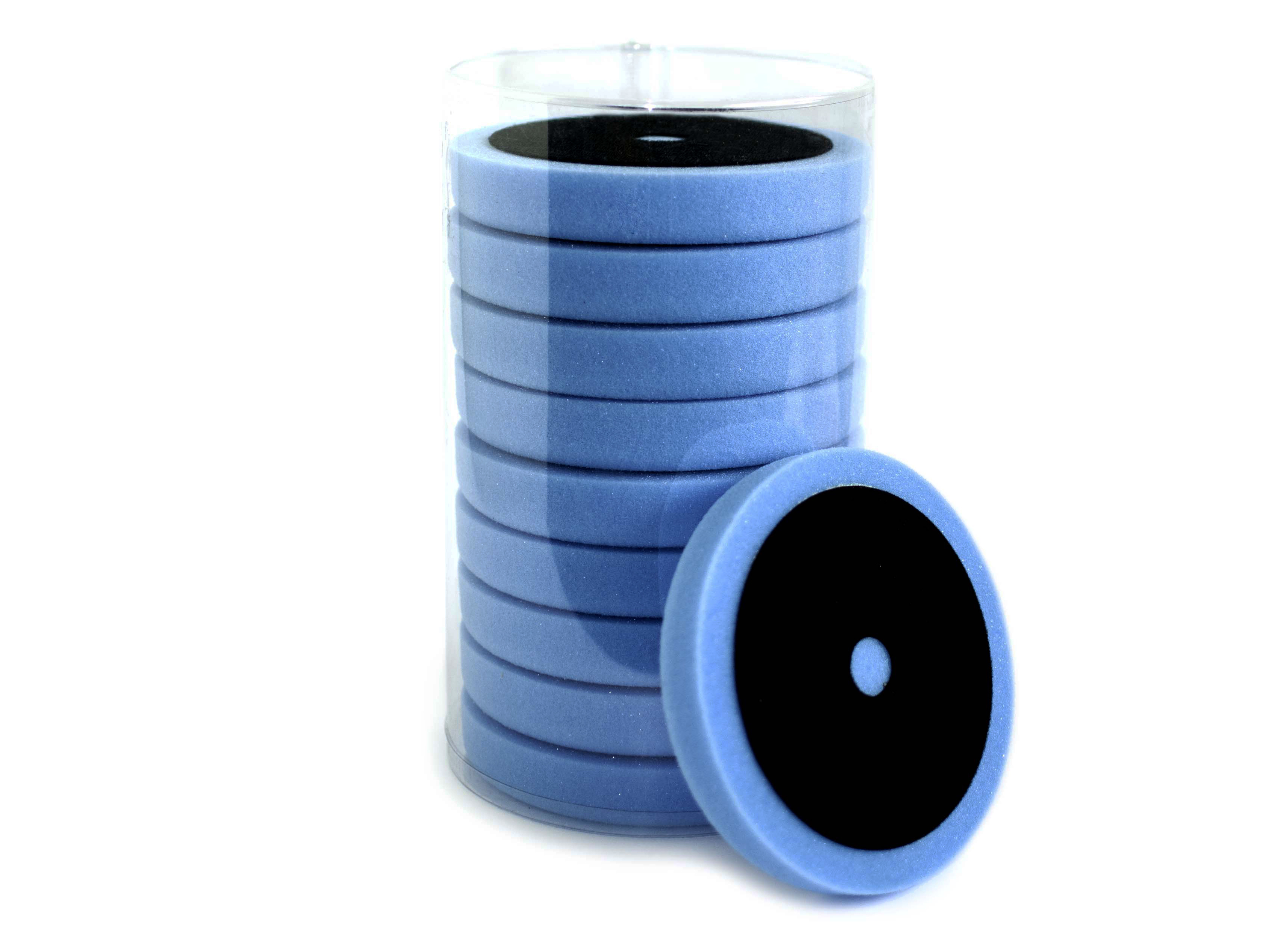 Medium harde poetspad (of polijstpad) 150x25mm blauw. Uitermate geschikt om extreem geoxideerd lakwerk weer op kleur te krijgen. Tevens geschikt voor krasverwijdering. Geschikt voor roterende poetsmachines met een 125mm steunplaat.