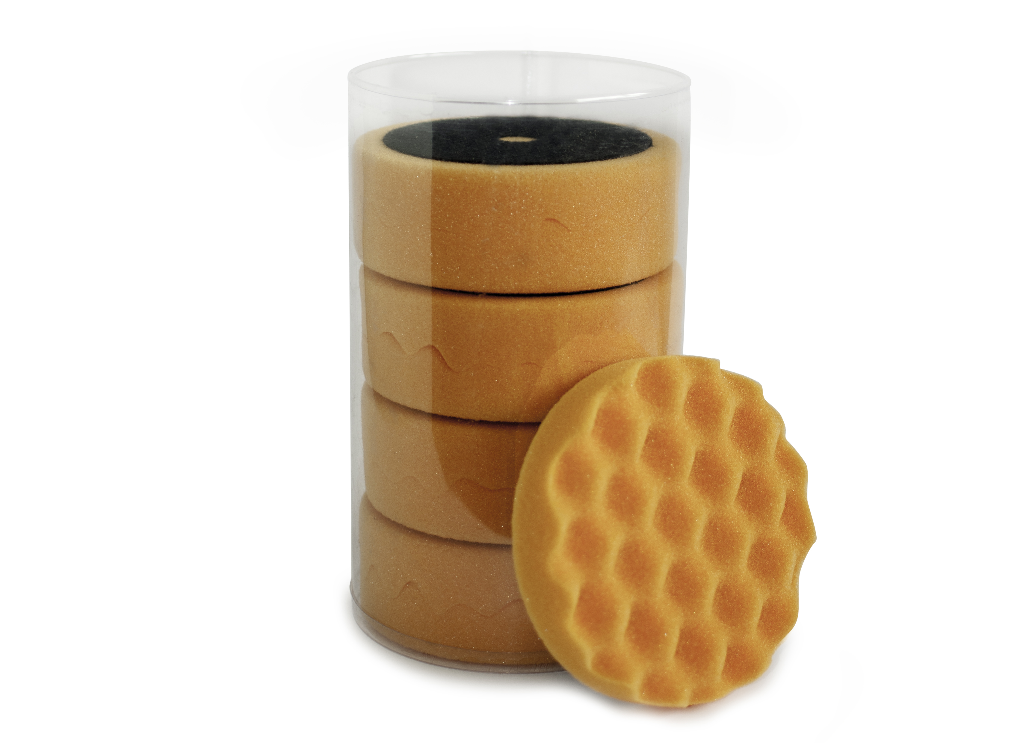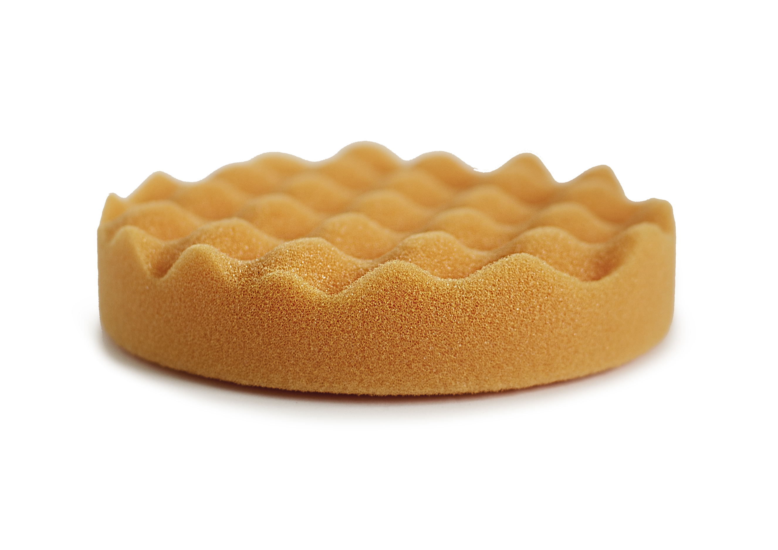 Medium zachte poetspad (of polijstpad) 150x25mm wafel. Uitermate geschikt om extreem geoxideerd lakwerk weer op kleur te krijgen. Tevens geschikt voor krasverwijdering. Geschikt voor roterende poetsmachines met een 125mm steunplaat. De wafelstructuur zorgt ervoor dat er minder snel poetsbanen (swirls) kunnen ontstaan.
